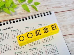 記念日には、誕生日・結婚記念日・命日などの個人的な記念日のほか、公的な機関が制定した記念日があります。例えば地方自治体がその地域や特産品をPRするためや、地元で発生した大災害を忘れないために制定した記念日があります。また企業や商店が商品の販売促進などのために制定した記念日もあります。
